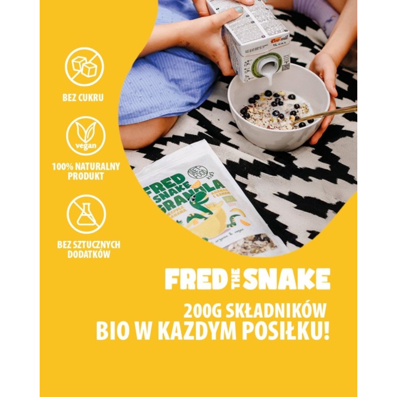 Fred The Snake Granola is designed with kids in mind. Made from 100% natural ingredients that kids will love, it's perfect for breakfast, as a yogurt topping, or as a sweet snack throughout the day.