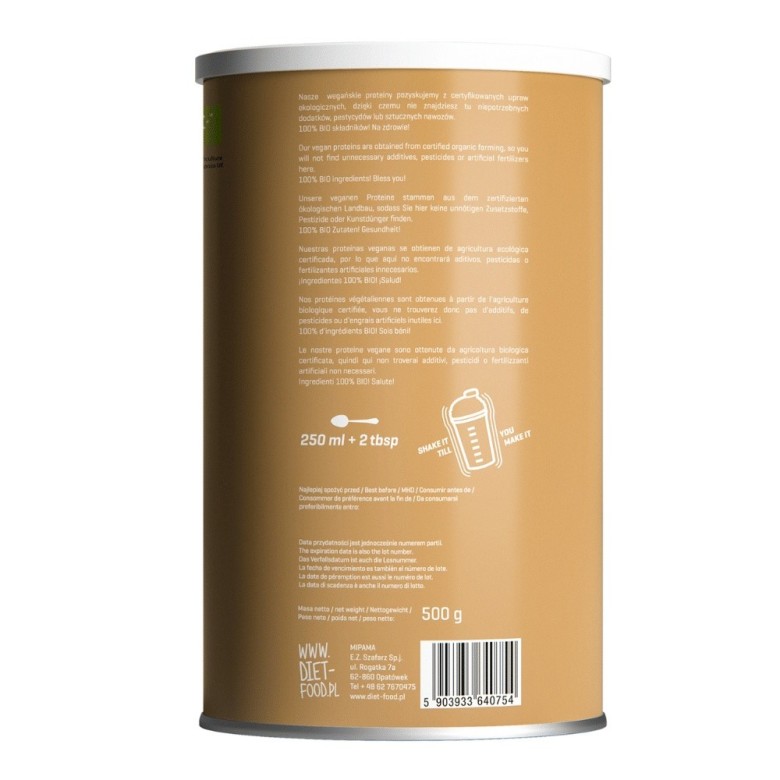 Proteins are made up of many different amino acids linked together. There are twenty different amino acid building blocks commonly found in plants and animals. A typical protein consists of 300 or more amino acids, and a particular number and sequence of amino acids is unique to each protein. Organic VEGE protein mix is the perfect amino acid supplement for people who cannot tolerate gluten or cow's milk protein. Suitable for vegans and vegetarians - it is a plant product. Recommended for people who train intensively, are active, want to have a slim and athletic body. Our proteins come from organic, unmodified peas. Now a novelty in the family of plant proteins, a larger package of 500 g and a new, exciting taste experience. Cocoa, raspberries, coconut with banana and delicious strawberries, try it and enjoy a new vegan explosion of flavor.
