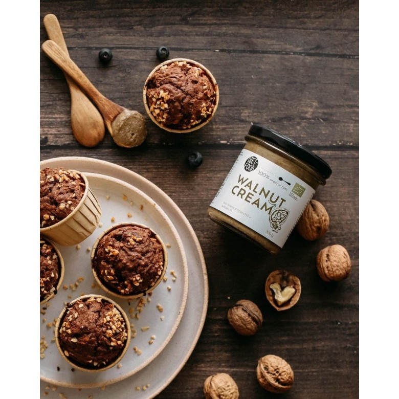 Natural, ecologically certified walnut cream, without any additives, prepared only from roasted nuts.