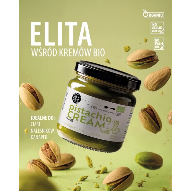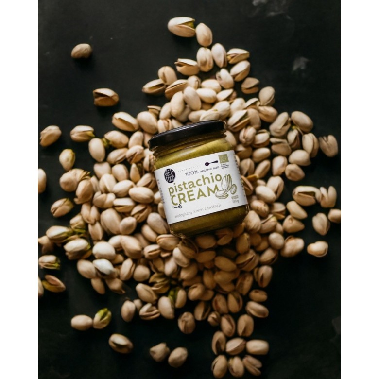 Krem z Pistacji, wykonany w 100% z ekologicznych, prażonych i mielonych orzechów pistacji, to produkt bez konserwantów, sztucznych barwników i substancji słodzących. Dzięki temu zapewnia autentyczny i bogaty smak pistacji.