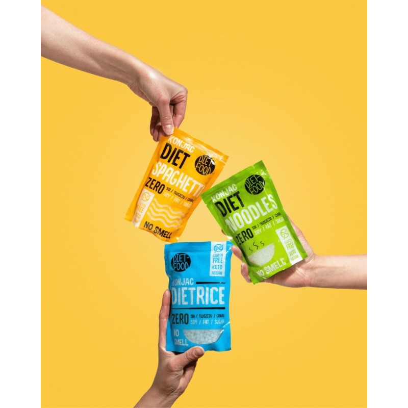 Głównym składnikiem Diet Noodles jest Glukomannan konnyak - rozpuszczalny w wodzie błonnik pochodzący z korzenia rośliny Konnyak. Oryginalnie pochodzi ona z Azji, a żywność z niej produkowana nosi również nazwy: Shirataki Noodles lub Konnyaku Noodles. Największymi konsumentem tej żywności na świecie są Japończycy.