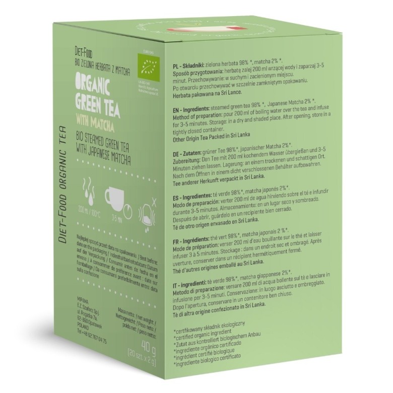 Bio Green Tea Matcha - zielona herbata z matchą 20 torebek (40 g)