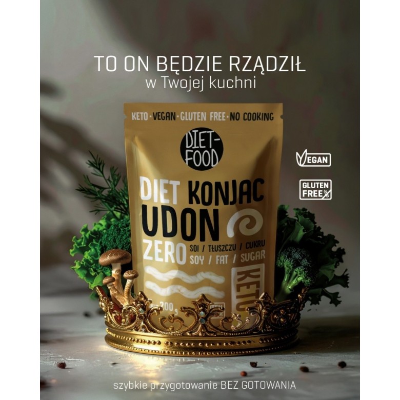 Głównym składnikiem makaronu konjac (shirataki) Udon jest Glukomannan konnyak - rozpuszczalny w wodzie błonnik pochodzący z korzenia rośliny Konnyak. Oryginalnie pochodzi ona z Azji, a żywność z niej produkowana nosi również nazwy: Shirataki Noodles lub Konnyaku Noodles. Największymi konsumentem tej żywności na świecie są Japończycy. Makaron konjac to naturalny produkt, bogaty w rozpuszczalny w wodzie błonnik, bez tłuszczu, cukru, skrobi i białka, bez pszenicy i glutenu. Produkt w 100% pochodzenia roślinnego, może być przechowywany w temperaturze pokojowej przez około rok, certyfikowany przez JAS (Japanesse Agricultural Standard), jest przezroczysty, bez własnego smaku, łatwo wchłania aromat dodatków i przypraw, jest szybki w przyrządzeniu, smaczny i zdrowy