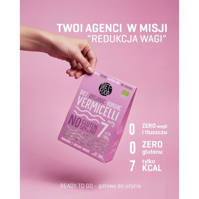Makaron konjac to naturalny produkt, bogaty w rozpuszczalny błonnik, bez tłuszczu, cukru, skrobi i białka, bez pszenicy i glutenu. Nie ma własnego smaku, dzięki czemu łatwo wchłania aromat dodatków i przypraw, jest szybki w przyrządzeniu, smaczny i zdrowy.