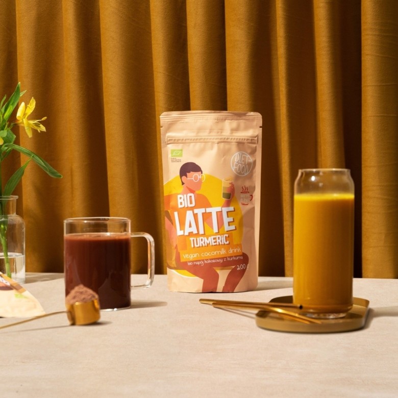 Latte, to starszy brat cappuccino, w którym wszystko kręci się wokół miękkiej, jedwabistej pianki. Zwykle latte składa się z pojedynczego lub podwójnego espresso (1/3 napoju), a 2/3 napoju to mleko gotowane na parze z niewielką warstwą (około 1 cm) spienionego mleka. Konsystencja latte jest bardzo ważna i dodaje odrobiny światła do pięknego wyglądu tego napoju. Bio Latte od Diet-Food to seria pysznych napojów na bazie bio napoju kokosowego, słodzonych jedynie cukrem kokosowym, bez laktozy oraz sztucznych dodatków czy koffeiny. Bio Latte to napoje rozgrzewające dedykowane weganom i wegetarianom oraz ludziom aktywnym poszukującym zarówno "porannego kopa" jak i "dawki energii w ciągu dnia".