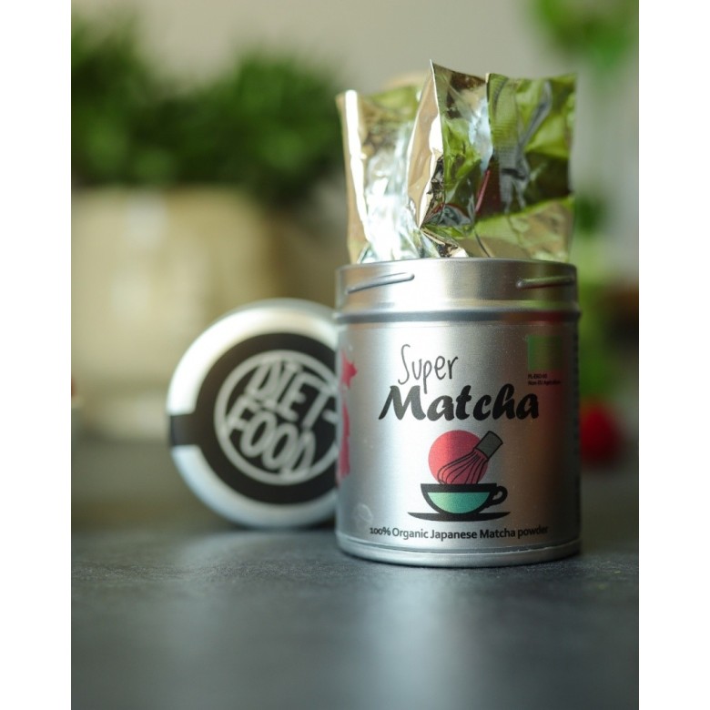 Super Matcha to w 100% organiczna zmielona zielona herbata pozyskiwana z ekologicznych upraw w prefekturze KIOTO (Japonia). Jest to matcha ceremonialna pochodząca z pierwszego zbioru (1 zbiór / ceremonial grade), charakteryzująca się intensywnie zielonym kolorem, wyjątkowo delikatnym smakiem bez wyraźnej goryczki oraz najwyższą jakością liści. Poprzez naturalnie występujące w niej: kofeinę, aminokwasy (L-teanina), witaminy i minerały – Matcha działa stymulująco, jednocześnie zapewniając relaks i dobre samopoczucie. Matcha zawiera ponad 137 razy więcej przeciwutleniaczy niż zwykła herbata zielona.
