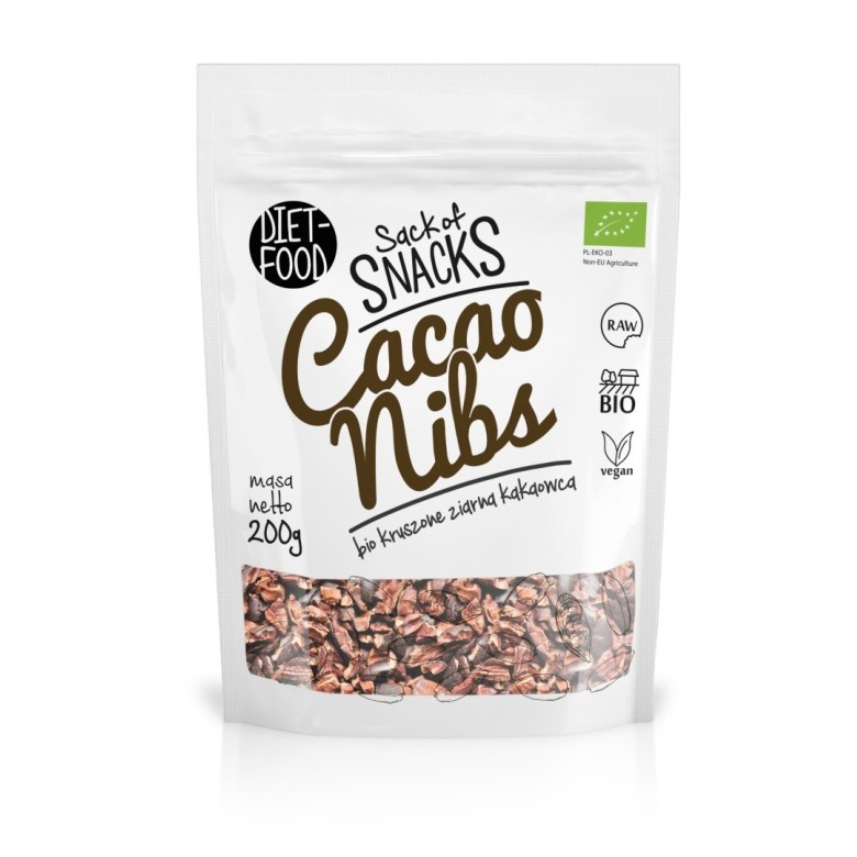 - 100% organiczne surowe kruszone ziarno kakaowca